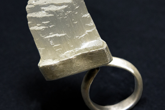 The unique stone is ulexite, also known as the TV stone because of its optical properties.
